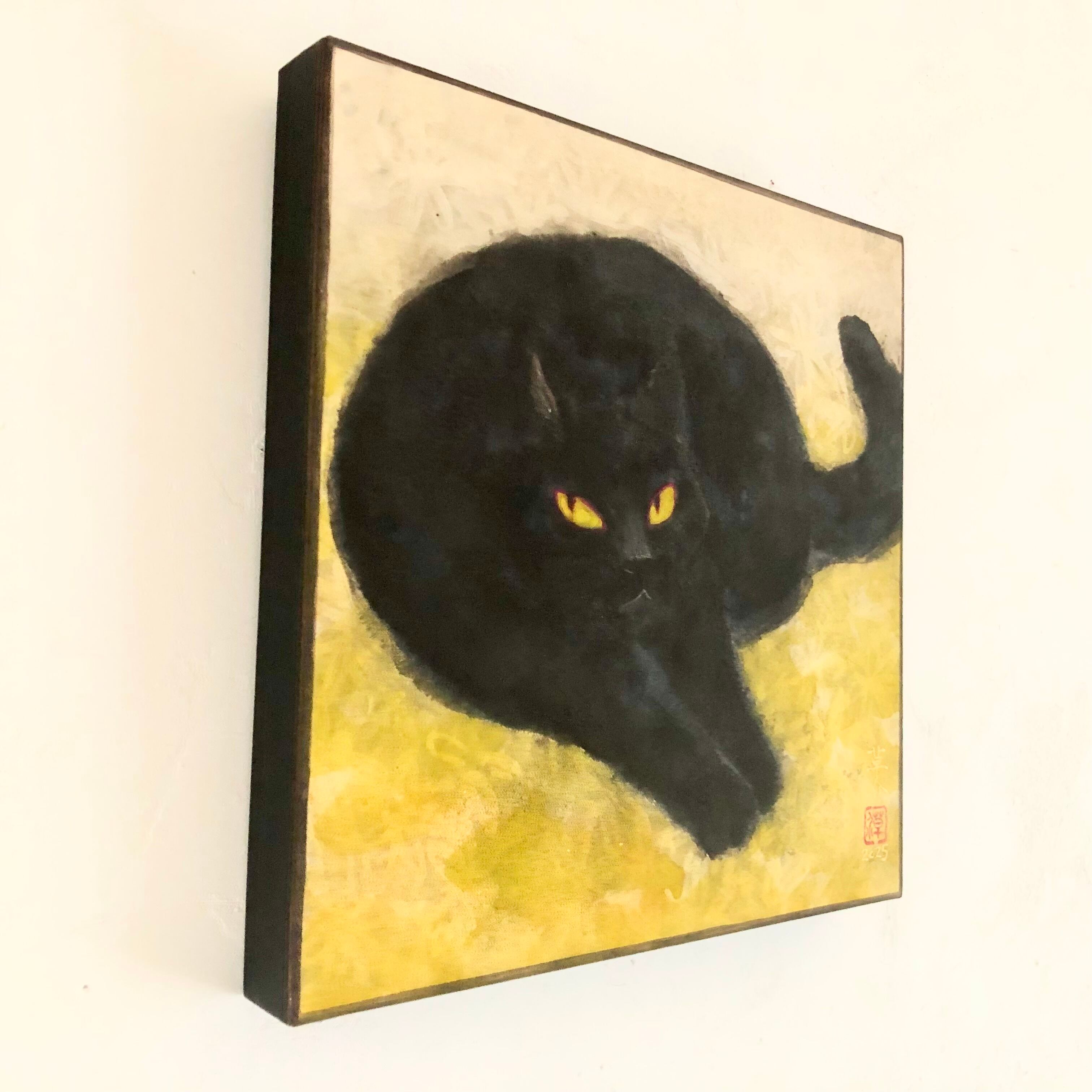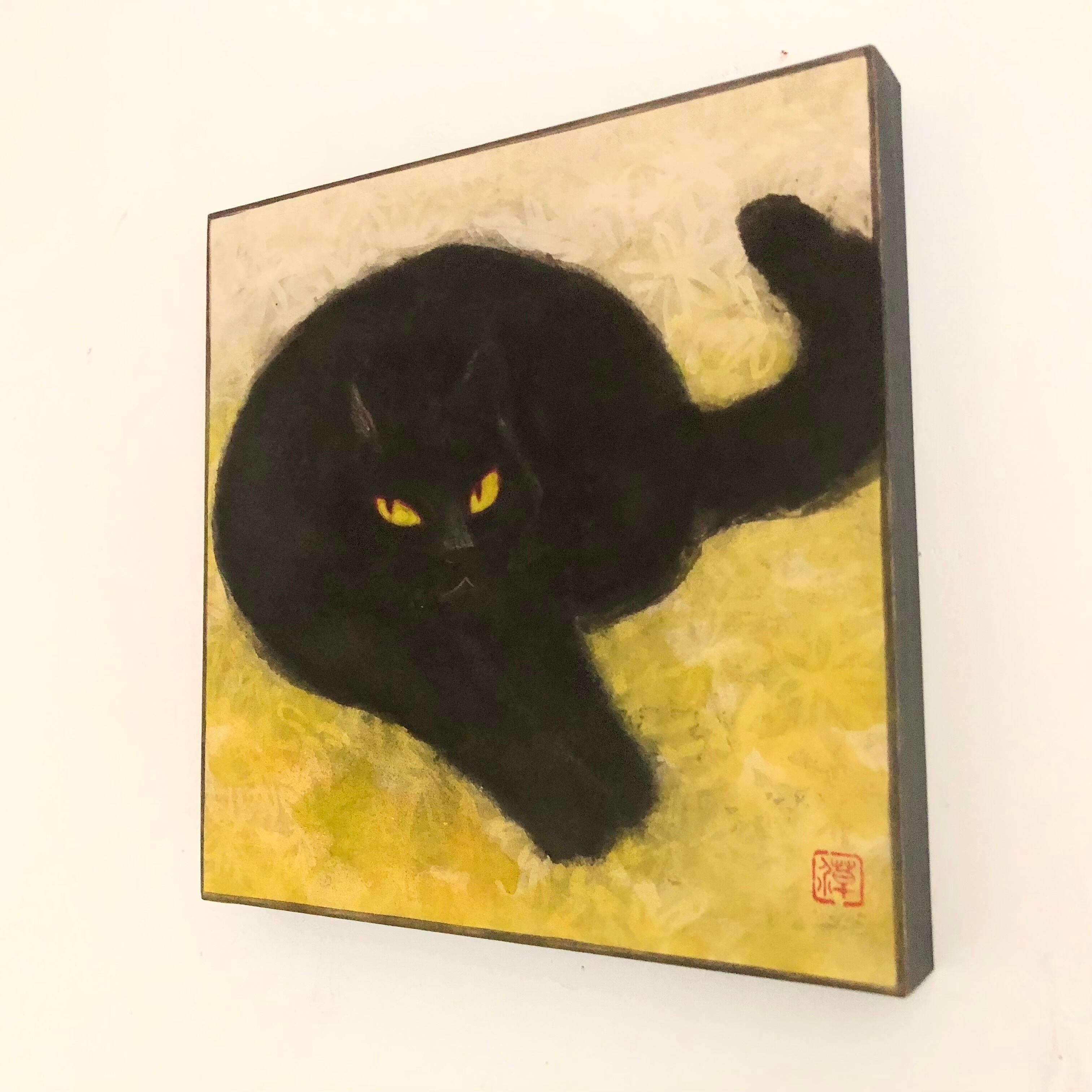 正方形のかわいい寸法です。 ちょっとした空間に、ちょっと存在感のある猫絵を飾られるのはいかがでしょうか。
