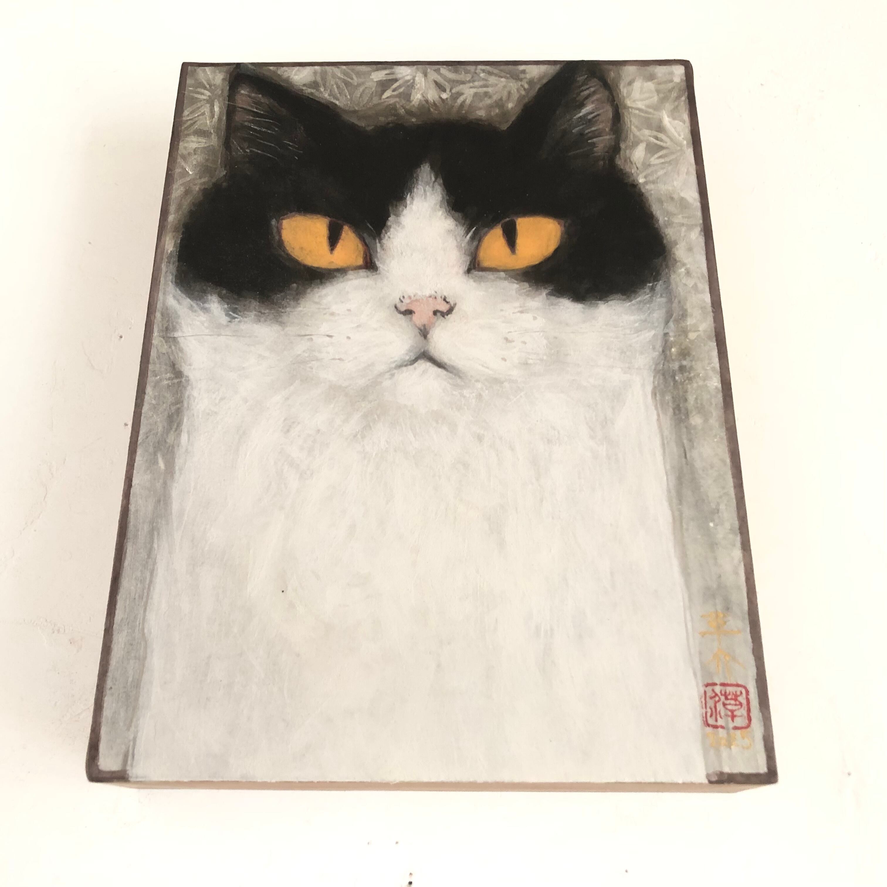 厚みがあるので飾ると存在感があります。 ちょっとした空間に、かっこいい猫絵を飾られるのはいかがでしょうか。