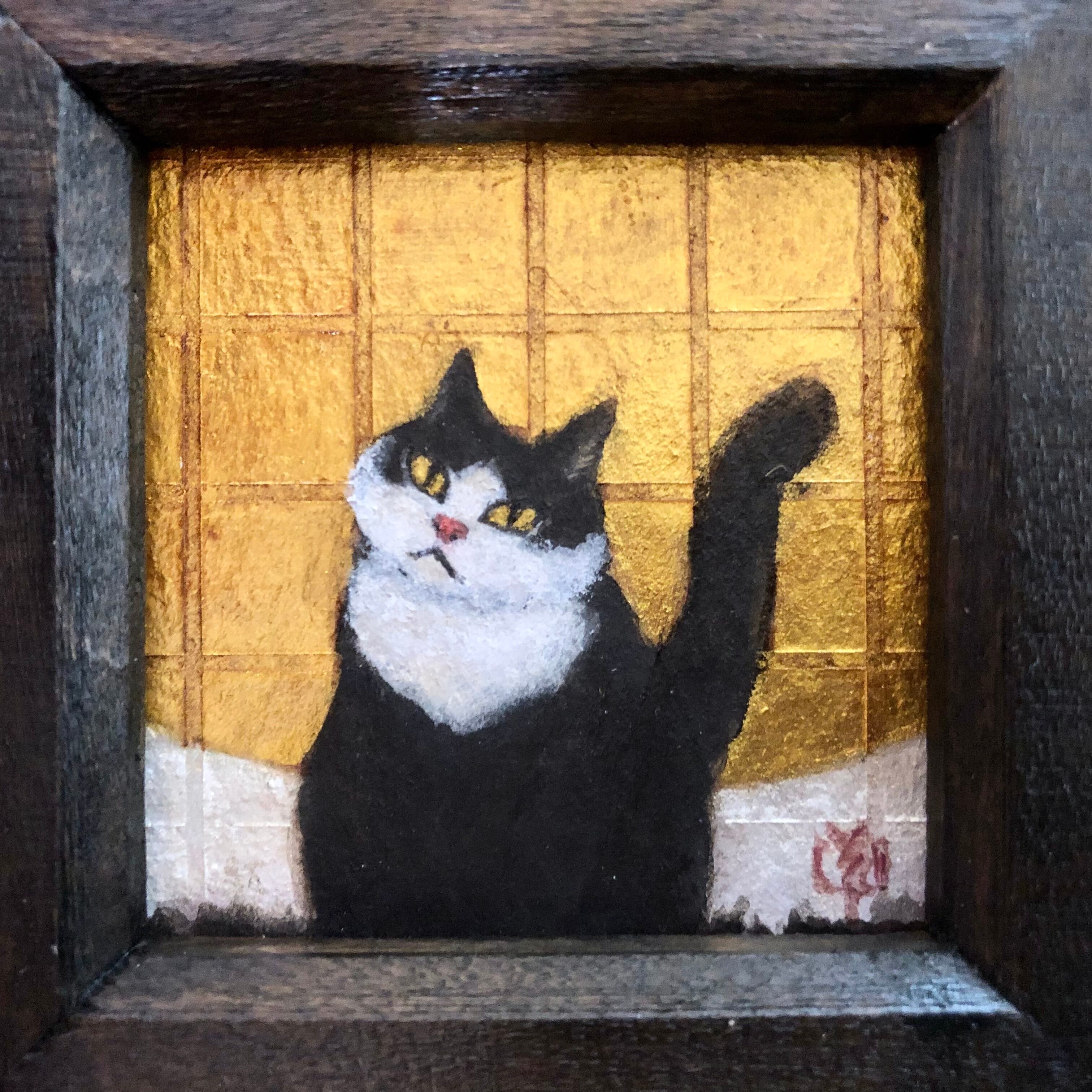 額縁付き肉筆アクリル画 「そーねこ」 chibi-e_n2685005