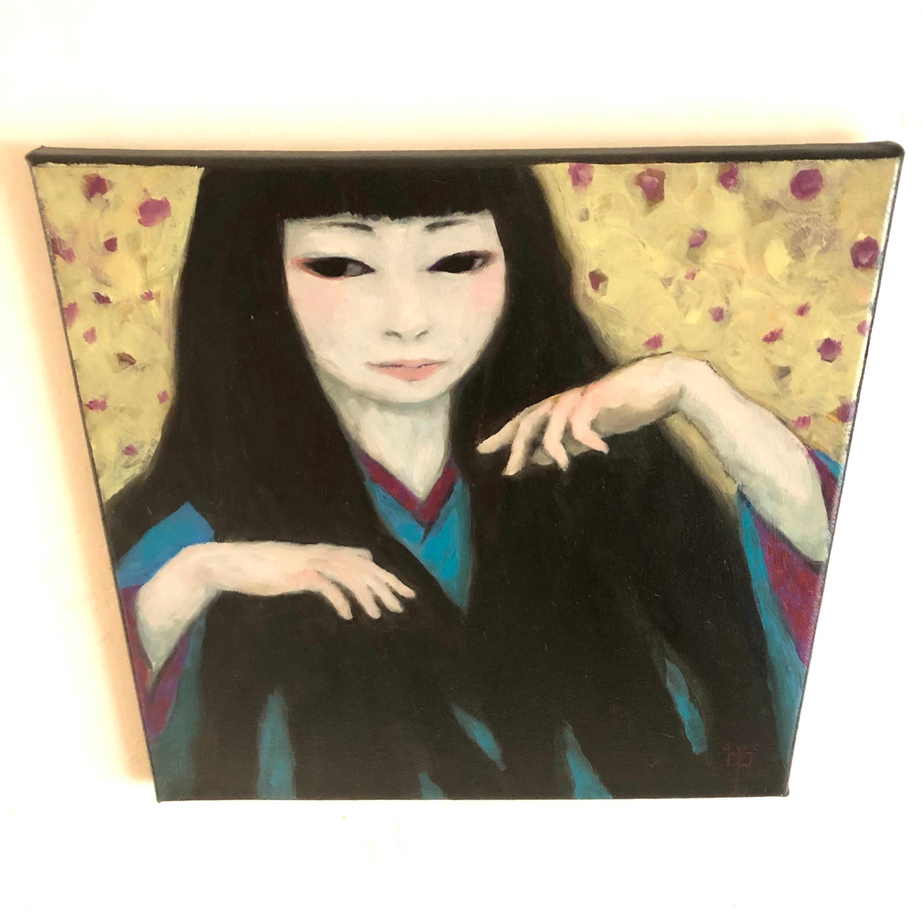 「乙女図」シリーズの 30cm角寸法の油彩肉筆画です。