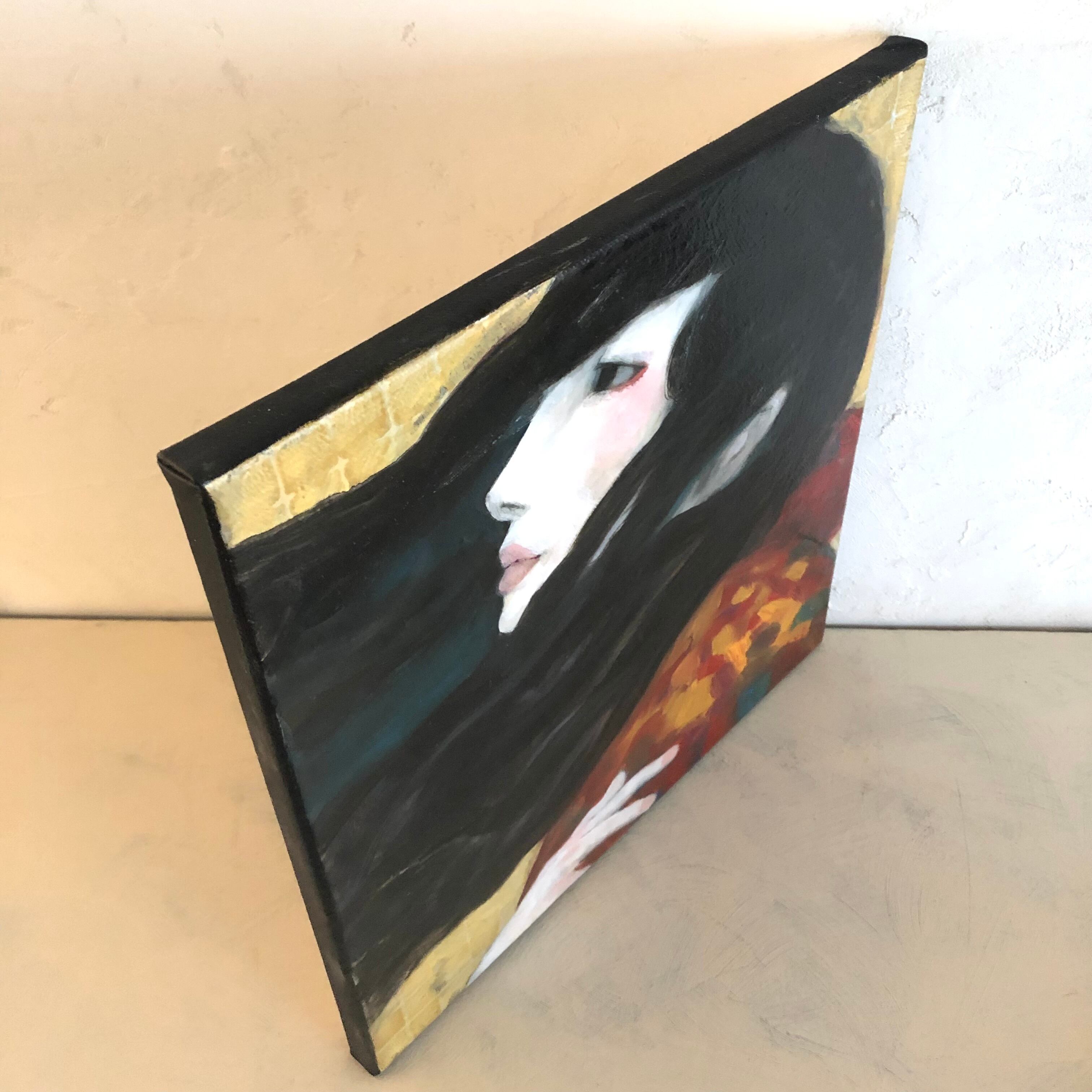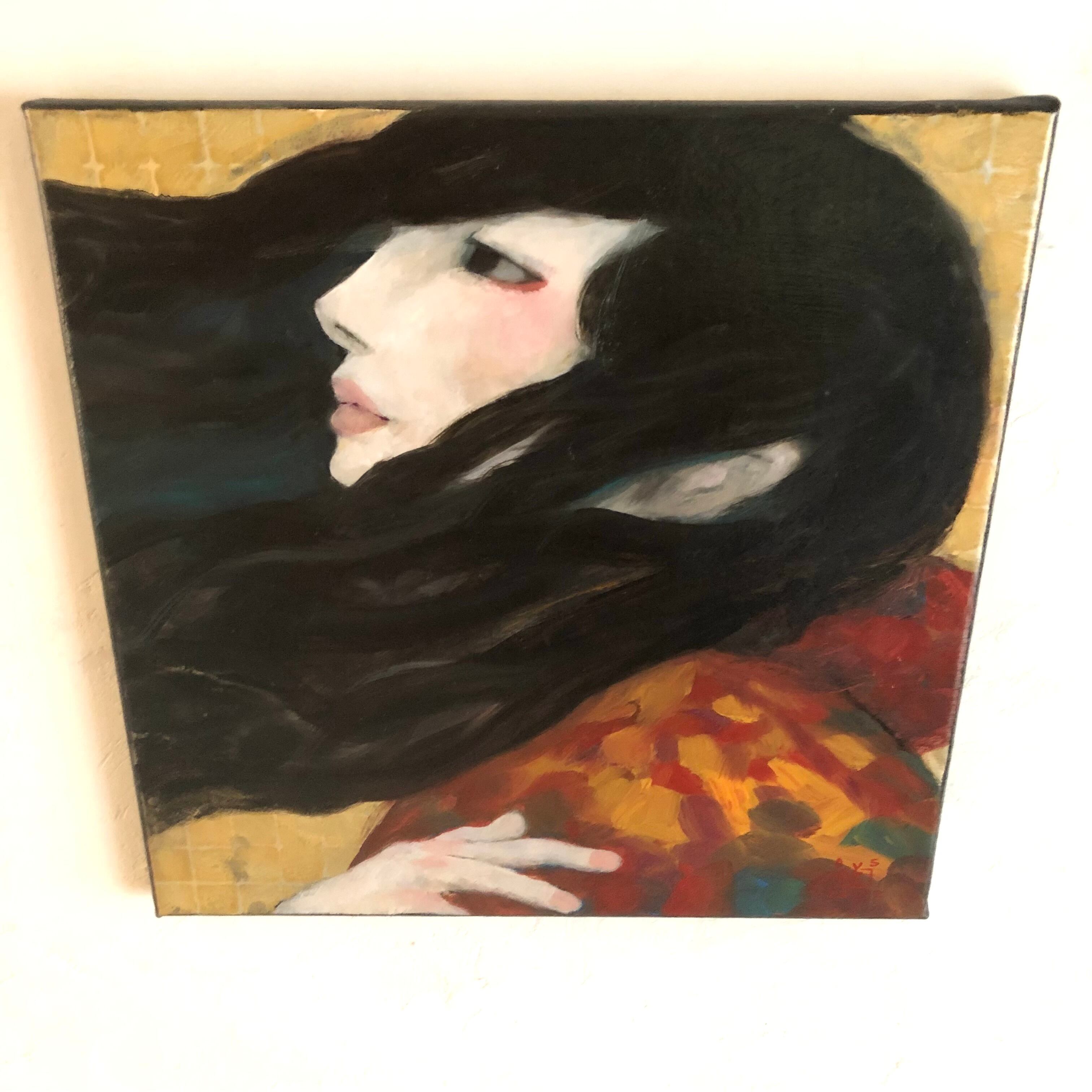 「乙女図」シリーズの 30cm角寸法の油彩肉筆画です。