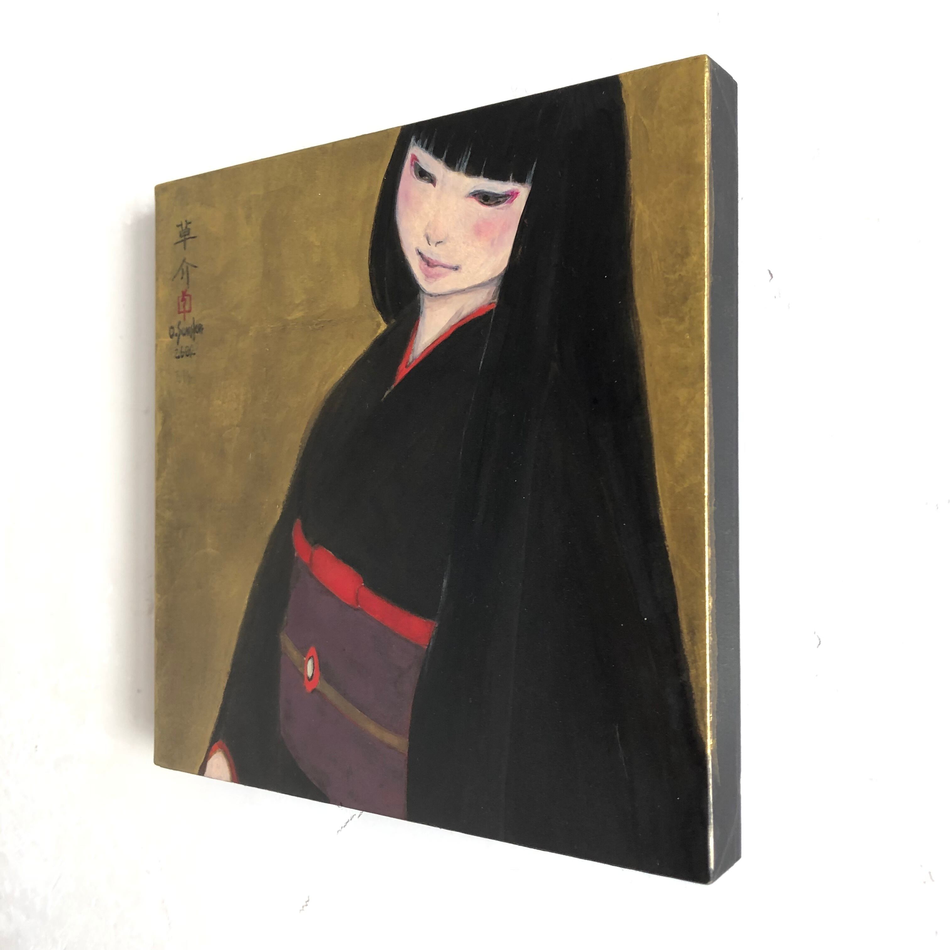 「美人画」シリーズの 18cm角寸法の混合技法肉筆画です。