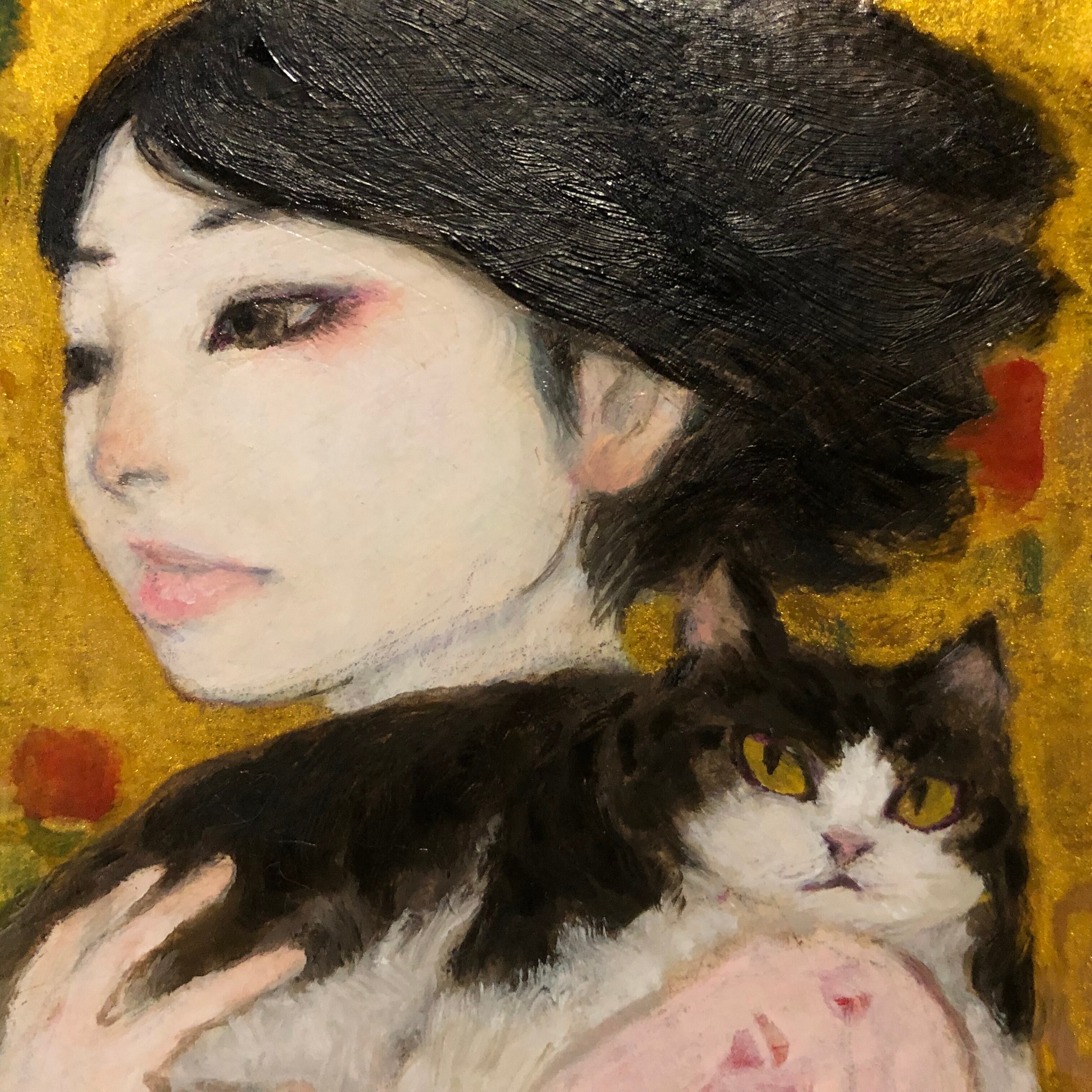 “Neco to Musume" Painting ”猫と娘” 油彩画 ~Bijin-ga series~. NMs0oil / 2683-005