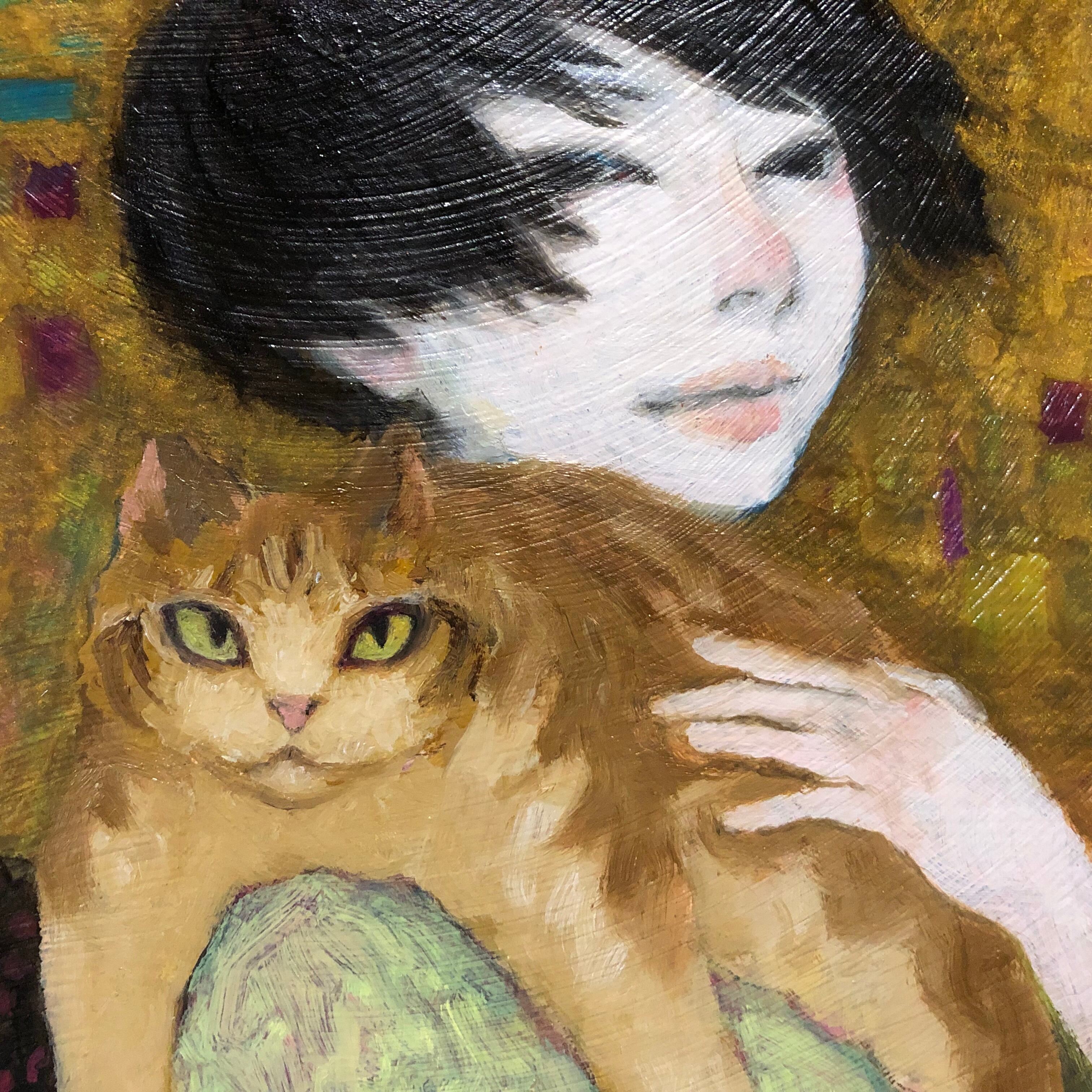 “Neco to Musume" Painting ”猫と娘” 油彩画 ~Bijin-ga series~. NMs0oil / 2683-008