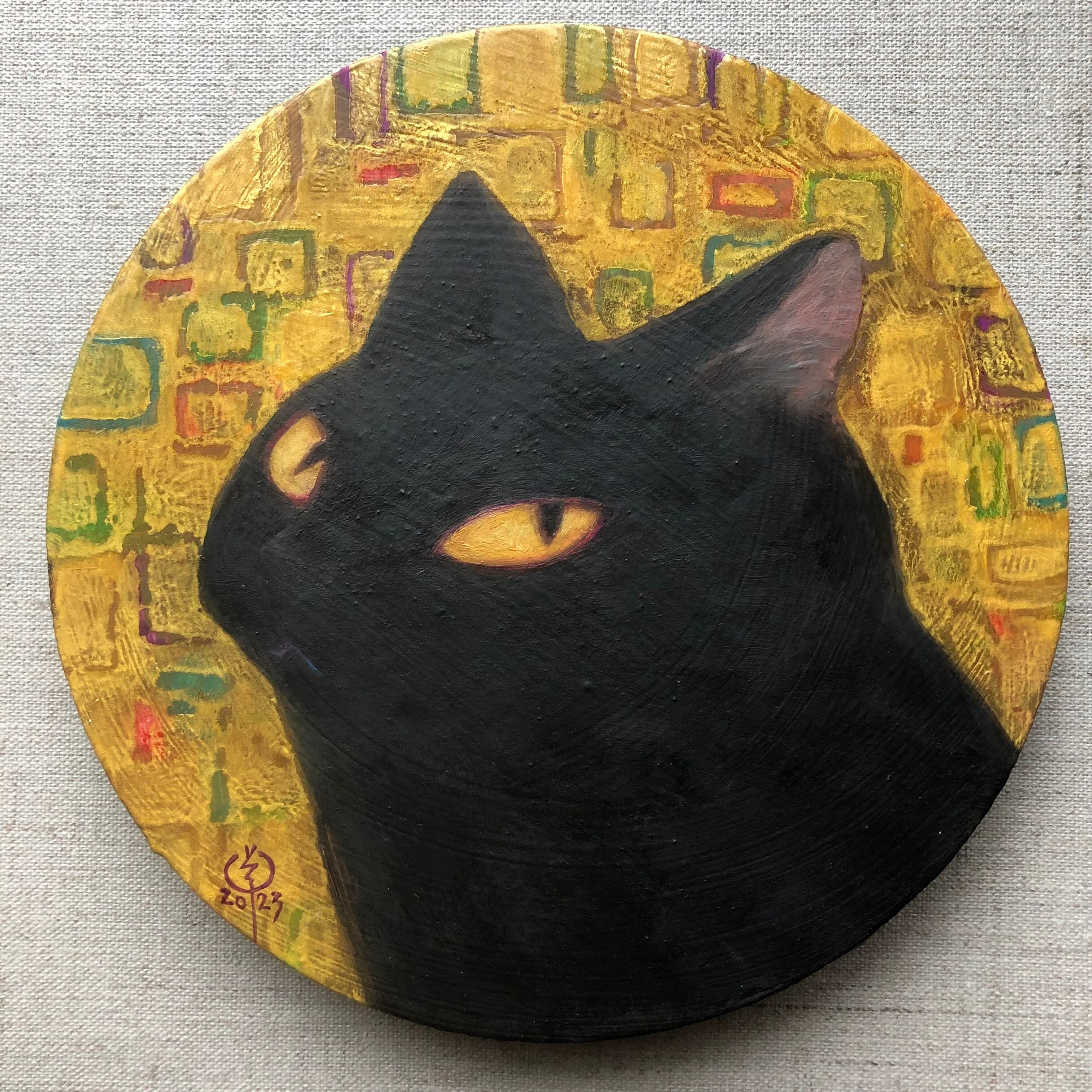 背景の金色と猫の艶消しのコントラストで、なかなかの存在感です。