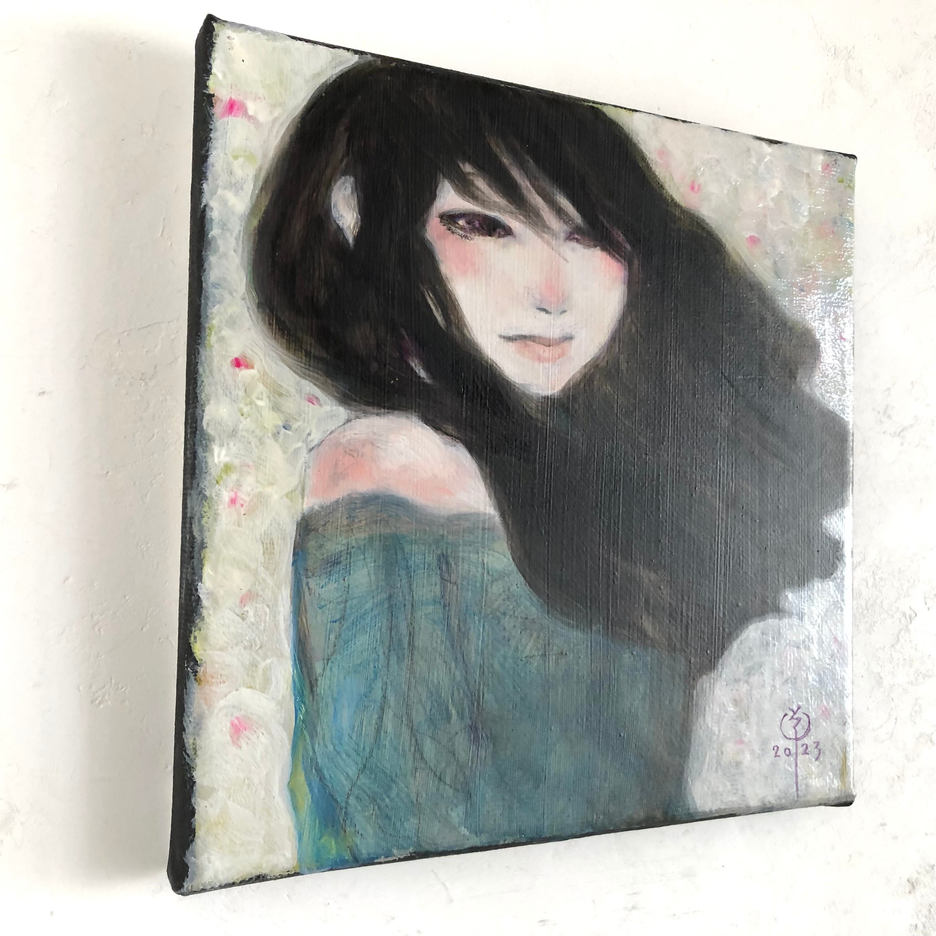 正方形のかわいい寸法です。 ちょっとした空間に、ちょっと存在感のある油彩美人画を飾られるのはいかがでしょうか。