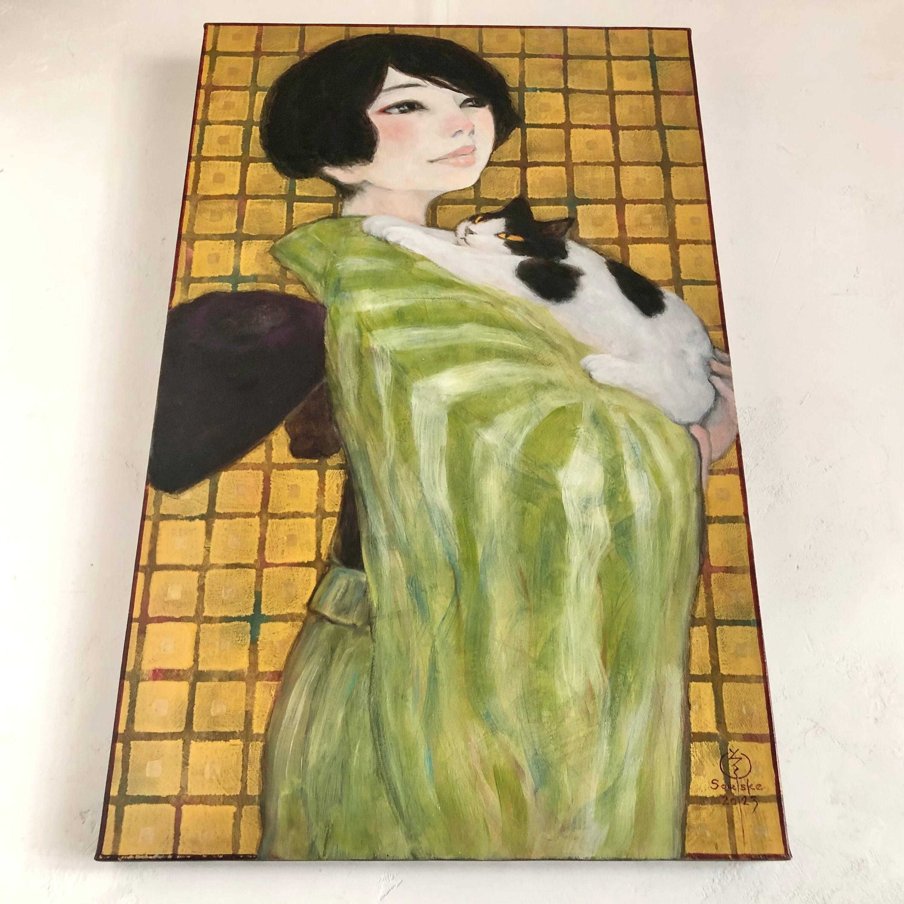 “Neco to Musume" Painting ”猫と娘” 油彩画 ~Bijin-ga series~. NMm10oil / 2683-004