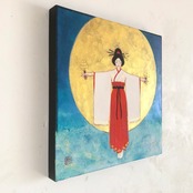 正方形のかわいい寸法です。 ちょっとした空間に、ちょっと存在感のある日本画美人画を飾られるのはいかがでしょうか。