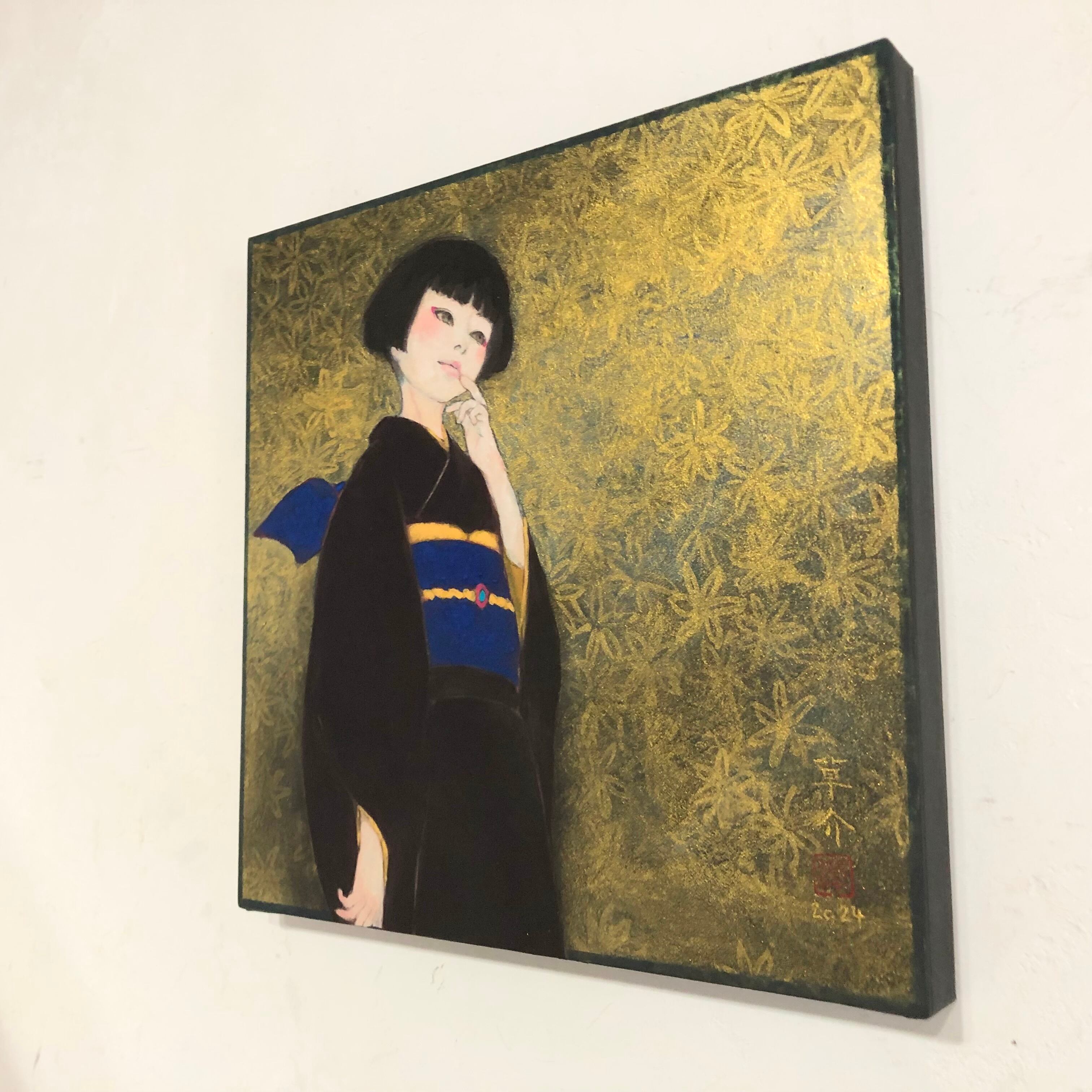 正方形のかわいい寸法です。 ちょっとした空間に、ちょっと存在感のある日本画美人画を飾られるのはいかがでしょうか。
