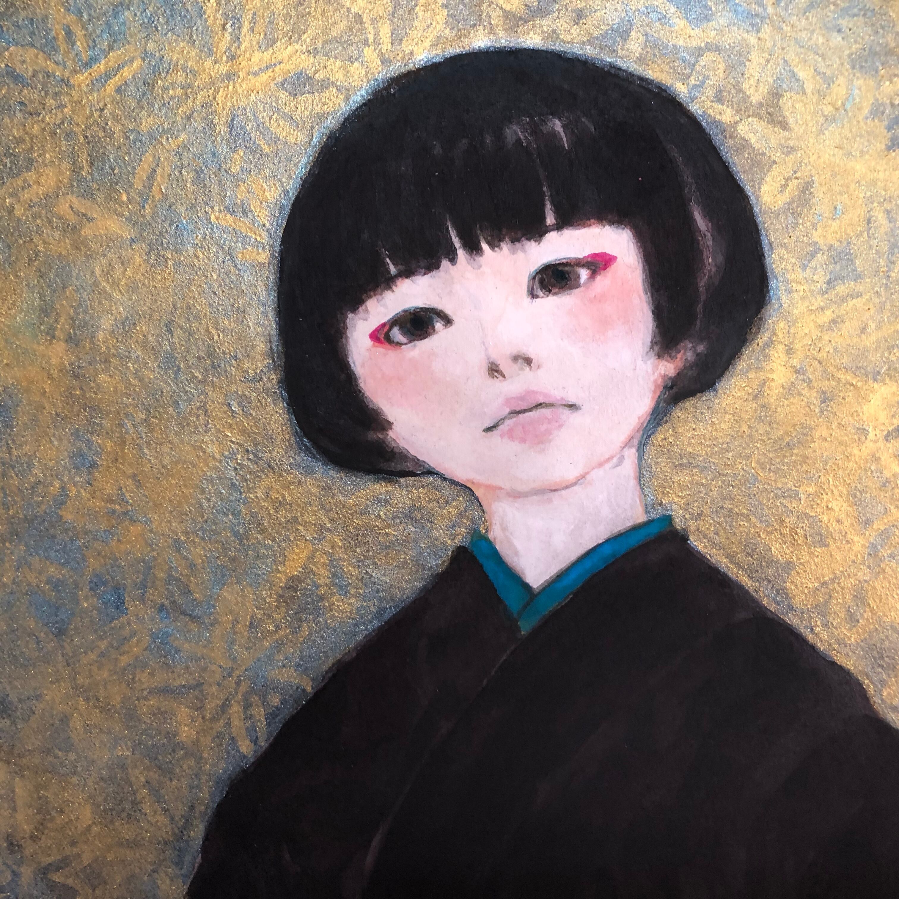 正方形のかわいい寸法です。 ちょっとした空間に、ちょっと存在感のある日本画美人画を飾られるのはいかがでしょうか。